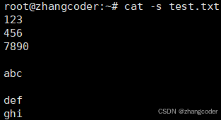 cat -s test.txt