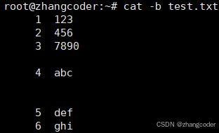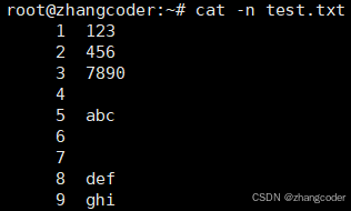 cat -sn test.txt