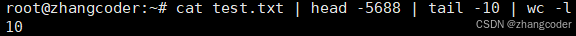 cat test.txt | head -5688 | tail -10 | wc -l
