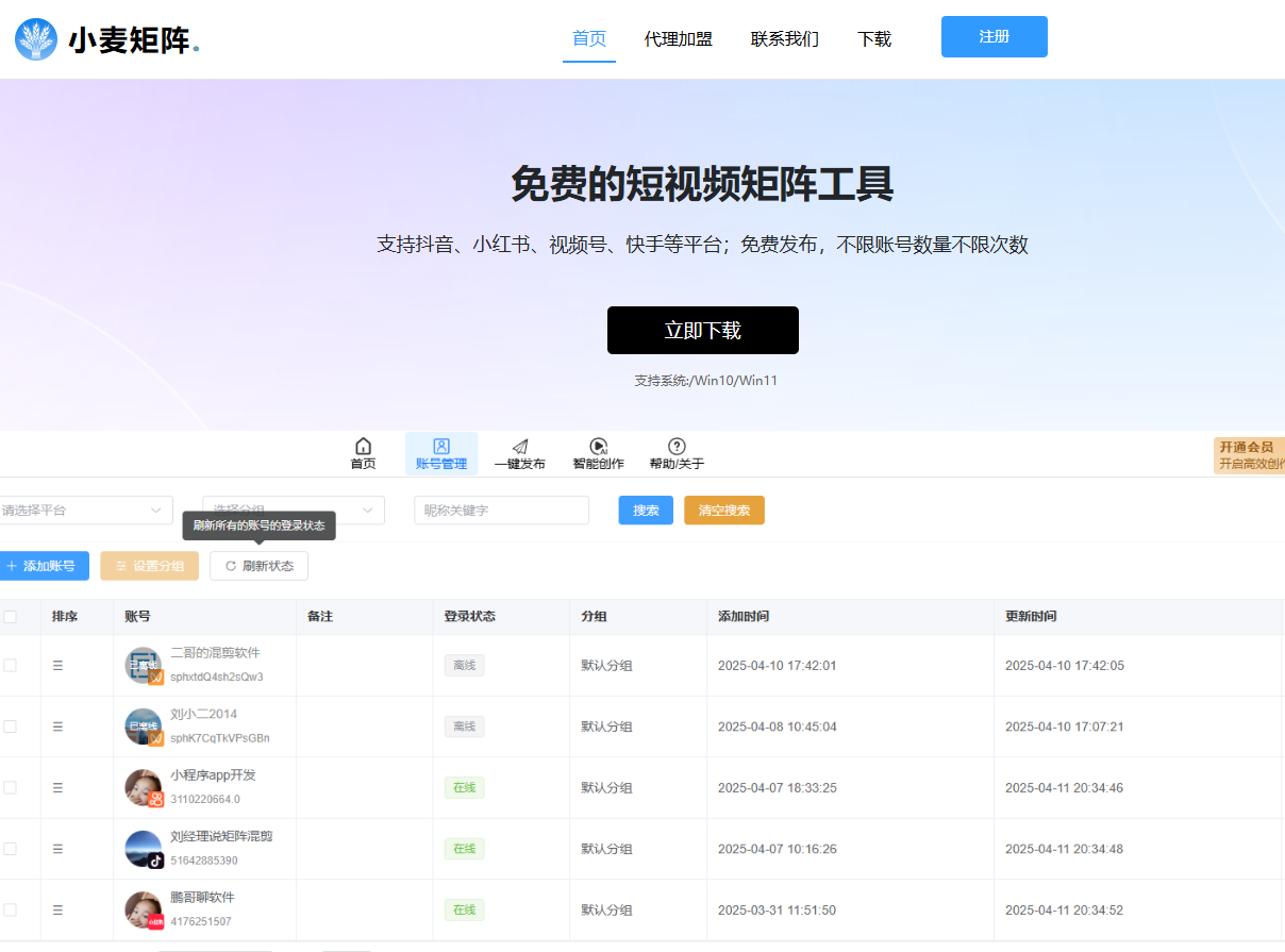 最终,小麦矩阵系统实现了:不掉线、更安全、更轻量、更智能的短视频矩阵管理方案。