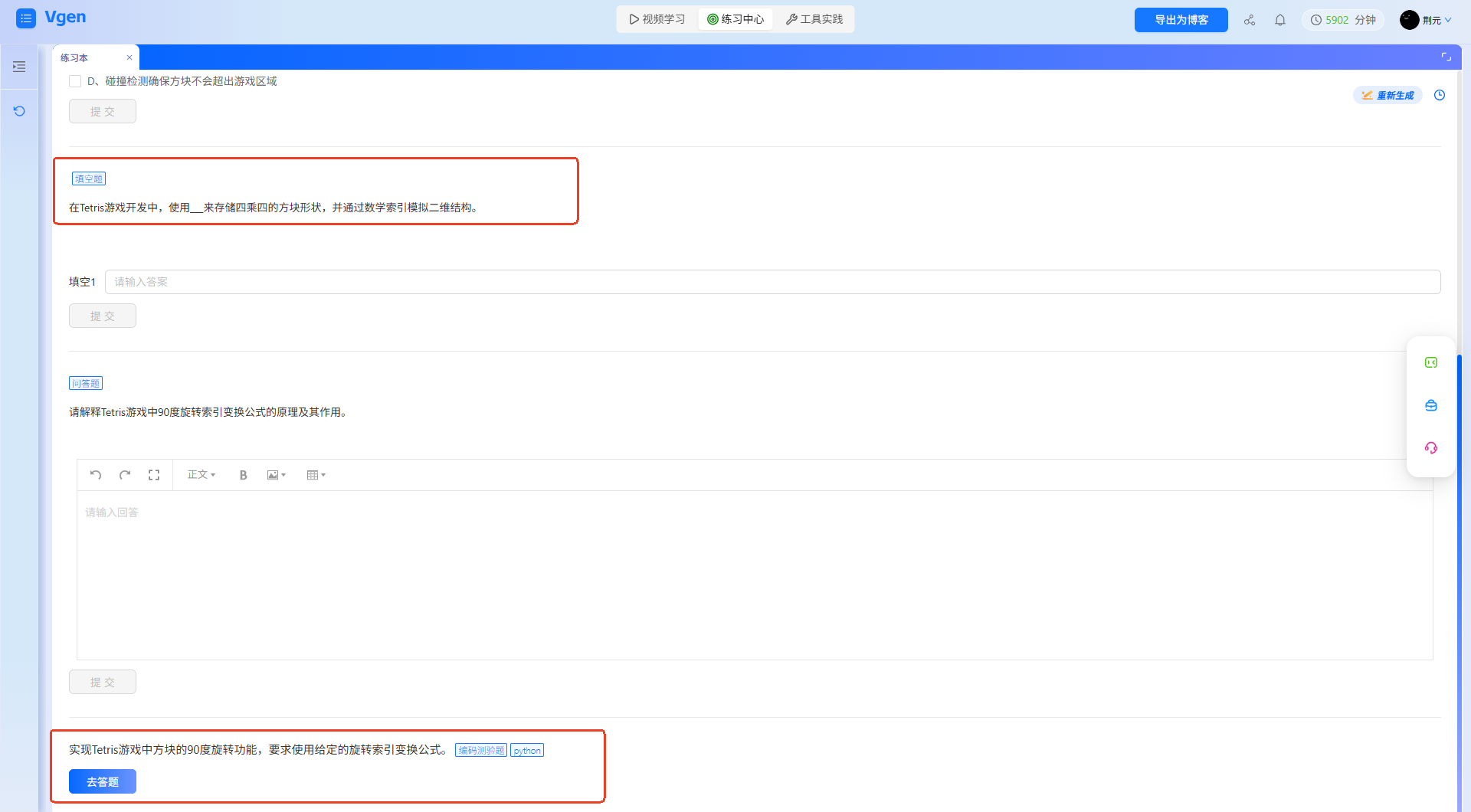 C++游戏开发的核心知识点(比如方块旋转逻辑、碰撞检测、消行算法),新手很容易“当时懂了,过两天就忘”。智能视频解析工具的AI自测能针对这些点出题,帮新手巩固关键技能,避免“只抄代码不懂逻辑”,真正入门游戏开发。