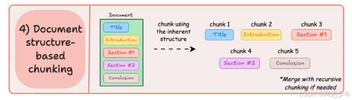 缺点:依赖文档有清晰的结构,如果遇到结构混乱的文档(比如纯文本无标题),就不好用了。另外,块的长度可能不均匀,有些块可能超过模型的Token限制,这时候可以结合递归分块一起用。