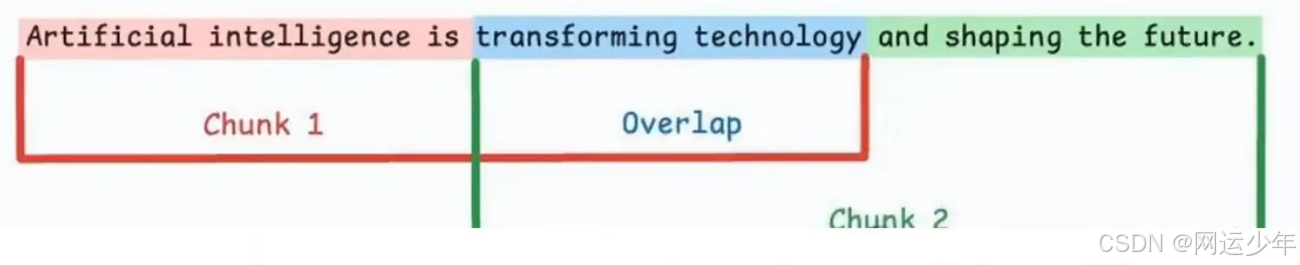 2、overlap:允许溢出。举个例子(图里的蓝色重叠部分):比如设定每块500字,那前一块的最后100字和下一块的前 100 字会有重叠。