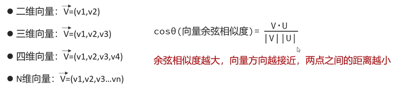 向量余弦相似度,用于表示坐标系中两个点之间的距离远近