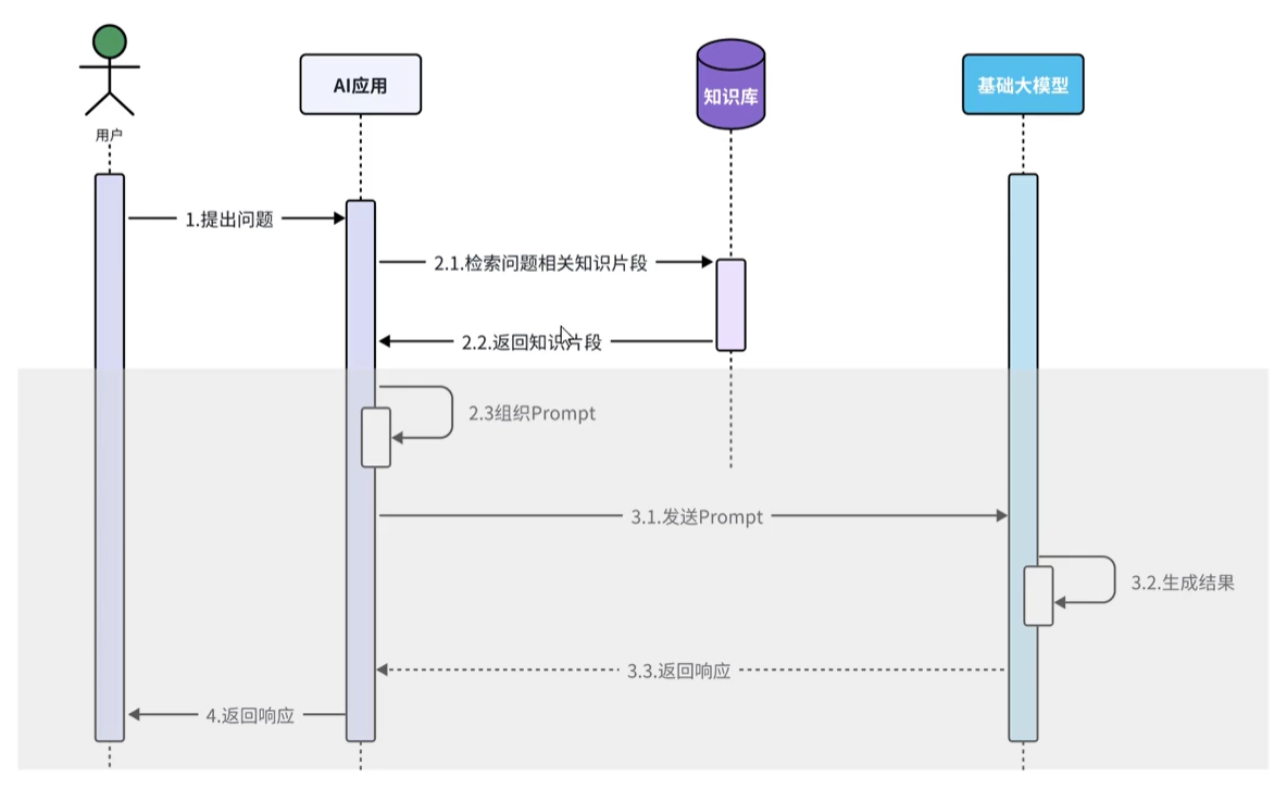 其中,2.3 组织Prompt、3.1 发送Prompt、3.2 生成结果、3.3 返回响应、4 返回响应的流程由 Langchain4j 来完成。