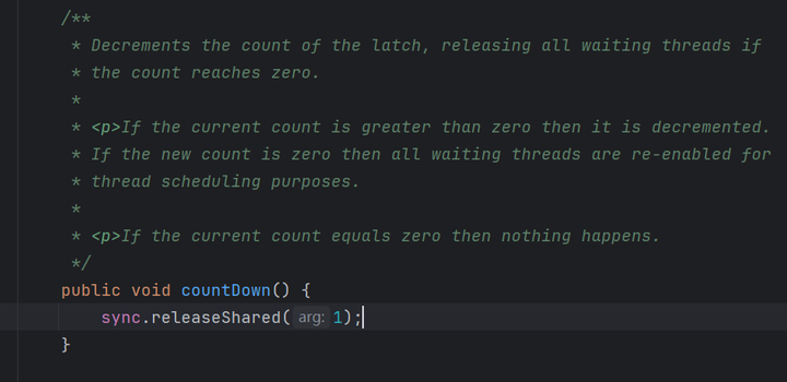 countDown()实际调用的是tryReleaseShared(),通过CAS减少state,当state归零时唤醒等待线程。