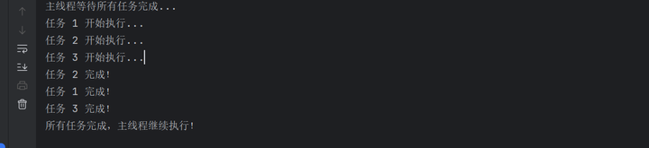 一起来看一个简单的示例代码,模拟主线程等待三个子线程完成任务。