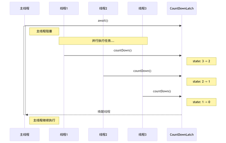 CountDownLatch的核心作用就是让主线程(或某些线程)等待多个子任务完成,不需要逐个调用 Thread.join()。特别适合需要协调多个线程完成固定数量任务的场景。