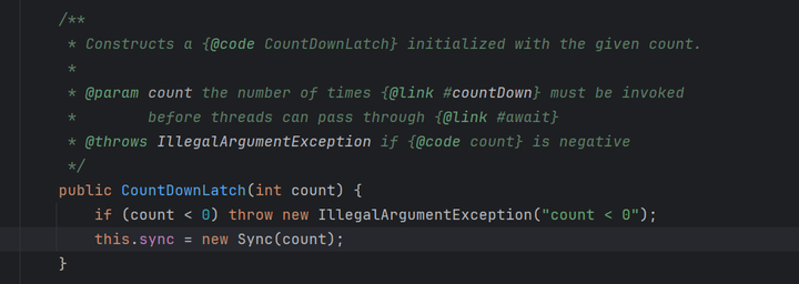 简单的构造方法,count就是需要等待的任务数量,用来初始化计数器。