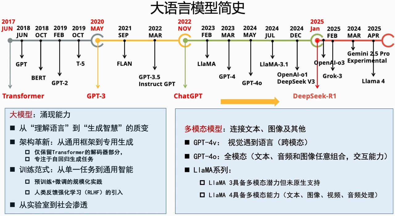 · 2017年,Google颠覆性地提出了基于自注意力机制的神经网络结构——Transformer架构,奠定了大模型预训练算法架构的基础。