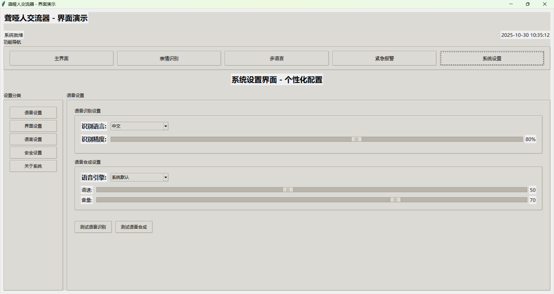 语音合成技术则让聋哑人能够"说话"。通过将文字转换为自然流畅的语音,聋哑人可以与他人进行语音交流,大大提高了沟通效率。系统支持多种语音引擎,可以根据用户需求选择最适合的声音。