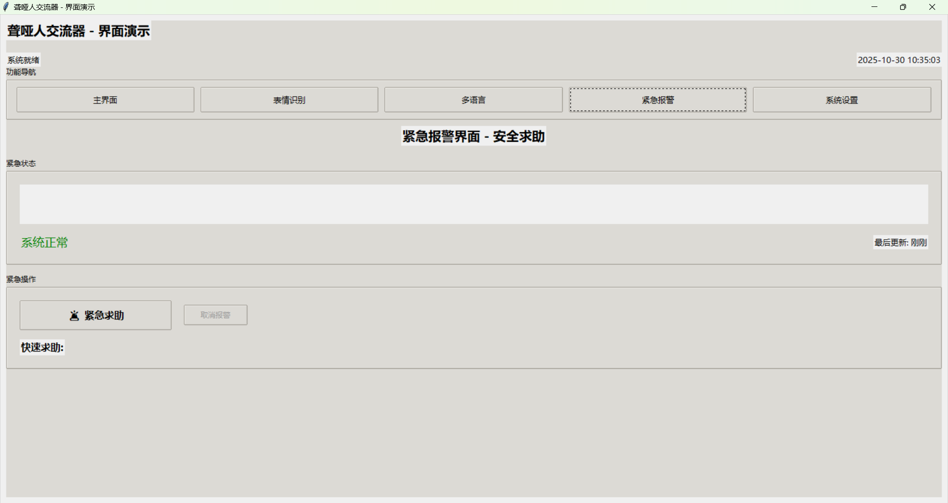 紧急报警功能为聋哑人提供安全保障,在危险情况下能够快速求助。系统集成了GPS定位、紧急联系人管理、自动发送求助信息等功能。