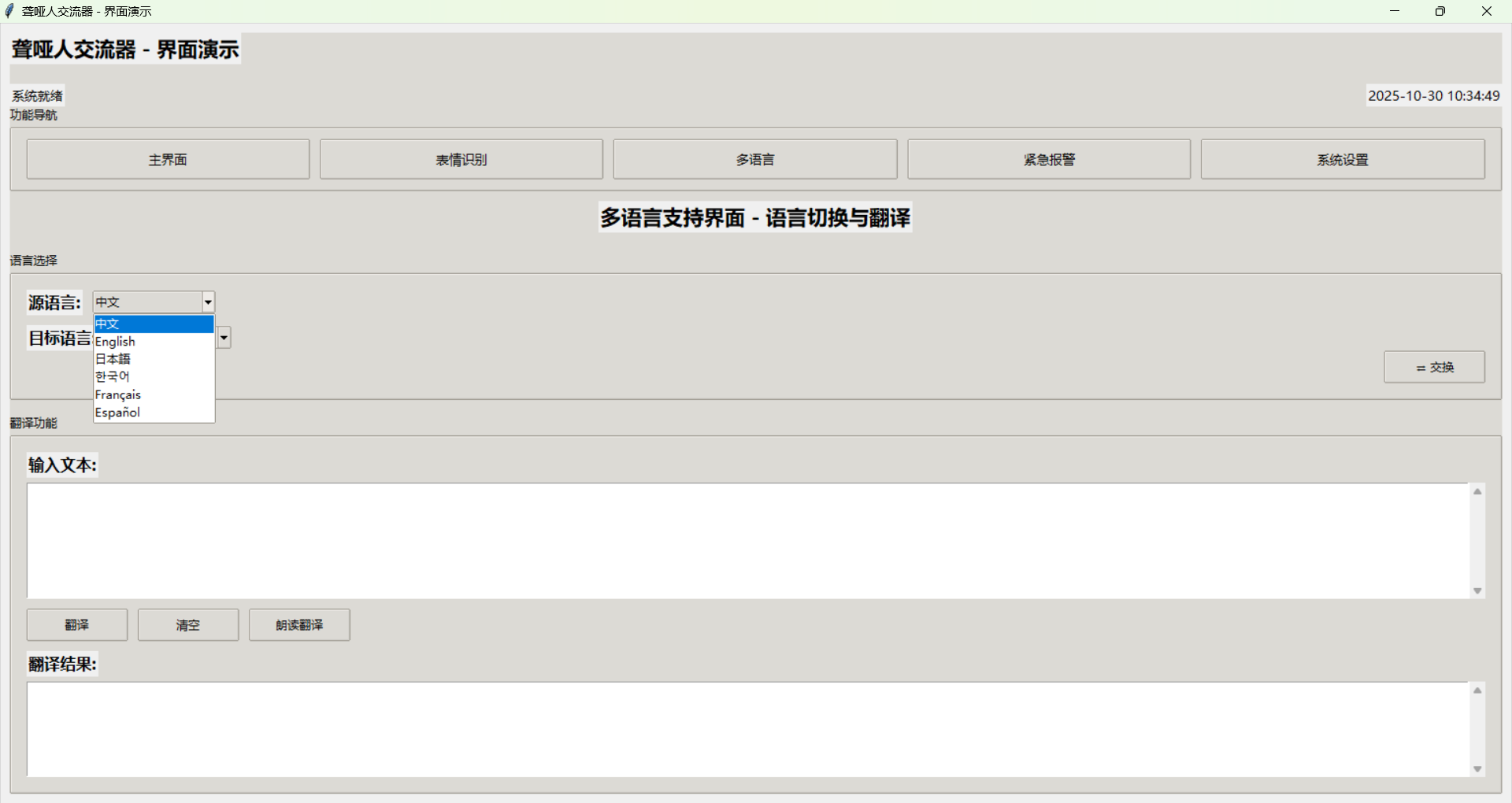 多语言支持功能打破了语言障碍,支持多种语言的切换和翻译,让聋哑人能够与不同语言背景的人进行交流。系统支持中文、英语、日语、韩语、法语、西班牙语等多种语言。