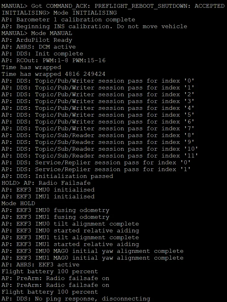 启动micro_ros_agent(将单片机(在这里我的是ArduPilot控制板)收集到的传感器信息转换为ROS消息),实际在我的ArduPilot固件编译的时候开启了DDS通信(待填坑。。。。。)。
