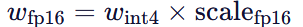 - 第一次量化:权重 → 4-bit,得到 FP16 的 scale 值