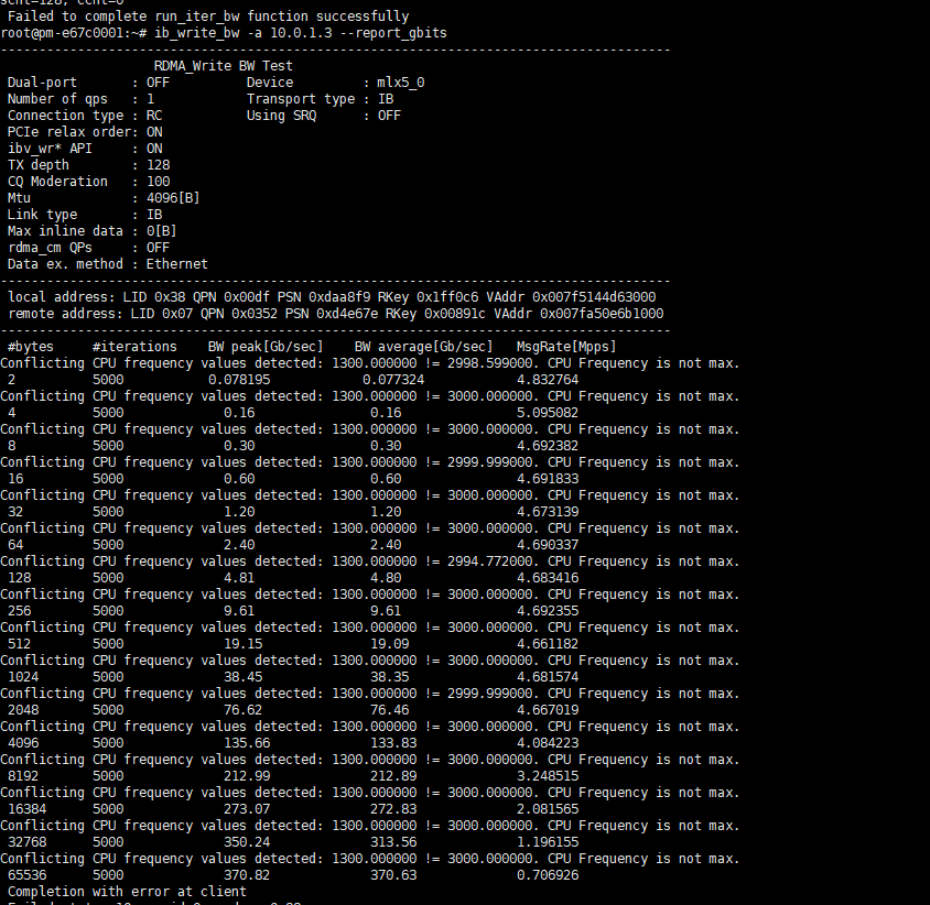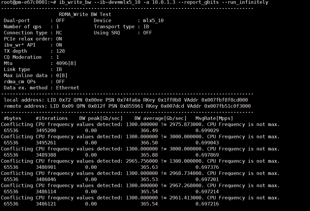 ib_write_bw --ib-dev=mlx5_10 -a <服务器内网IP地址> --report_gbits --run_infinitely