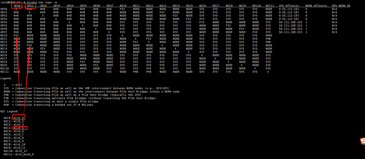 2.查看GPU拓扑、确认IB网卡名
