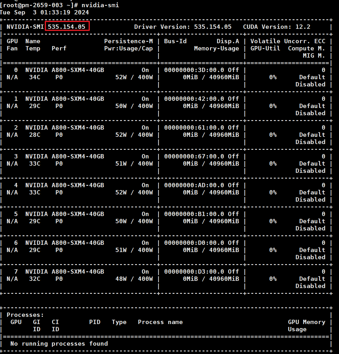 1.查看驱动版本和GPU卡在位情况