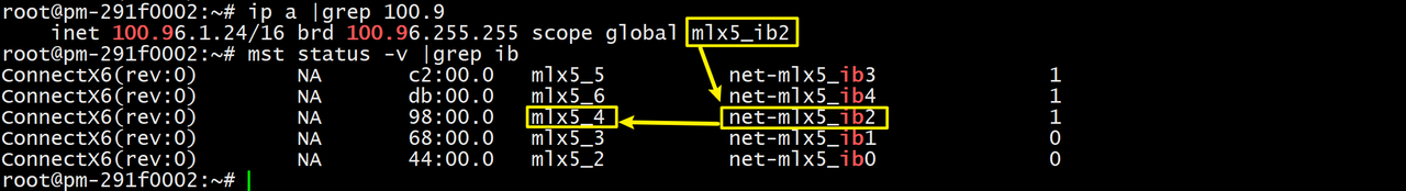 100.9x开头的对应网卡名为mlx5_ib2,对应的IB网卡名为mlx5_4,因此: