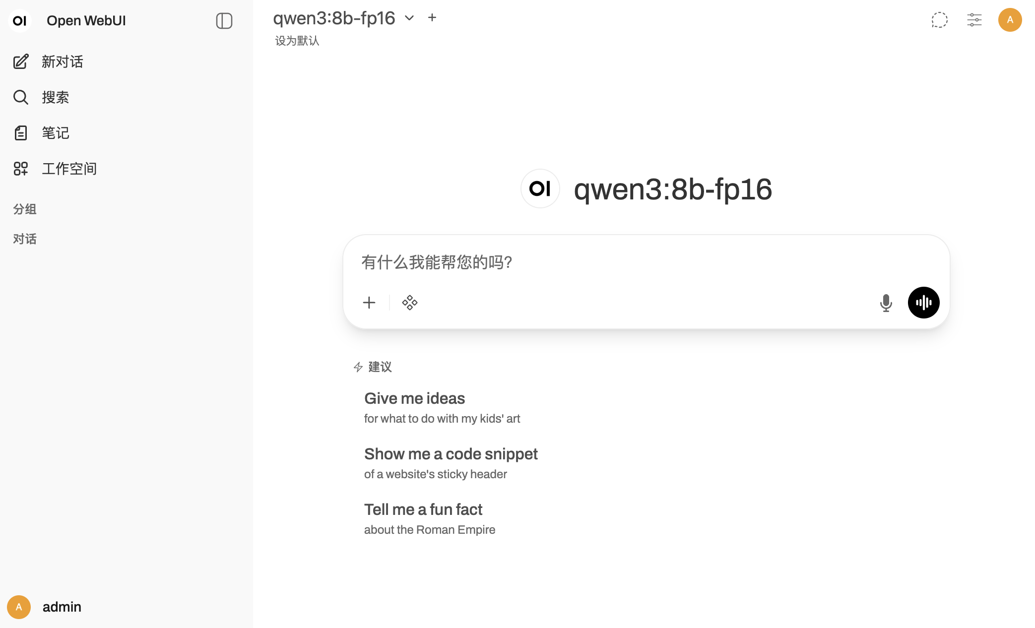 AI算力租赁平台有 3080 20G 的不多,这里只找到了 AutoDL 和 晨涧云 两家,创建3080 20G和3090 24G两种显卡的Ollama容器实例,启动后访问Open WebUI 选择模型: