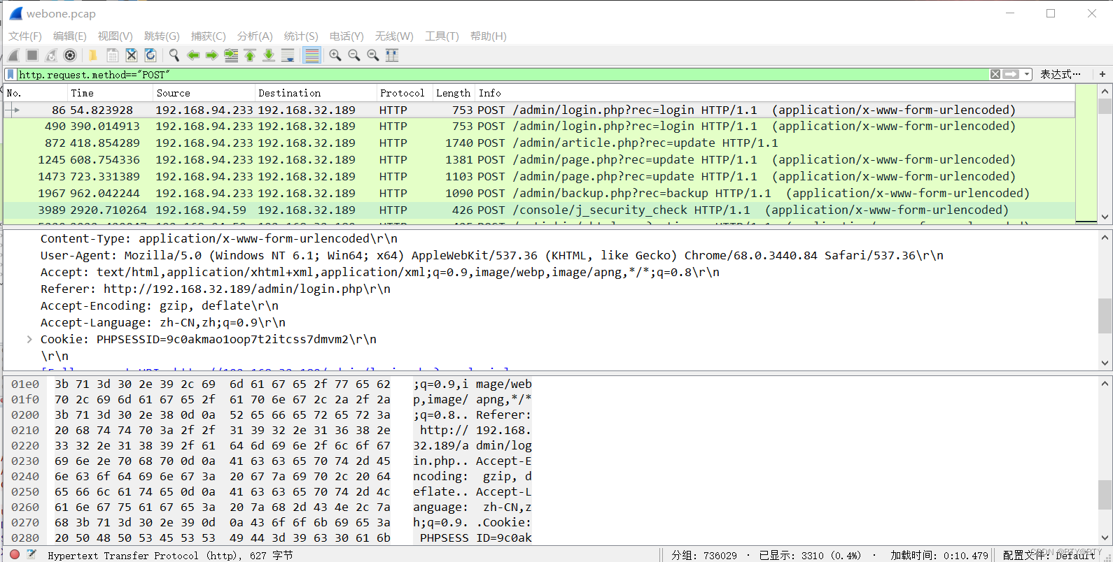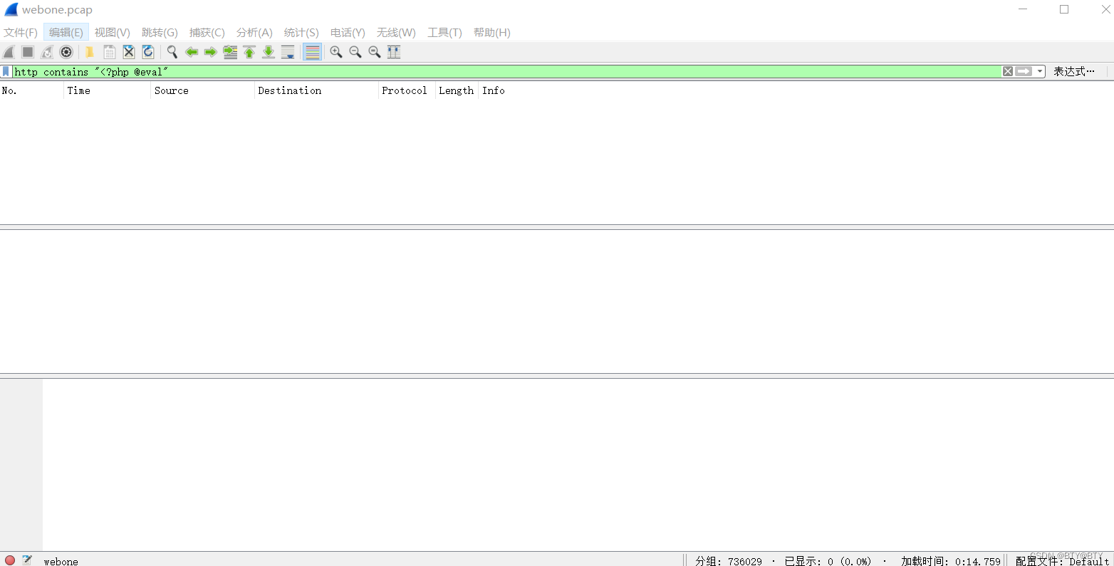 打开webone.pcap,根据上述背景分析和所给的扫描器特征进行过滤