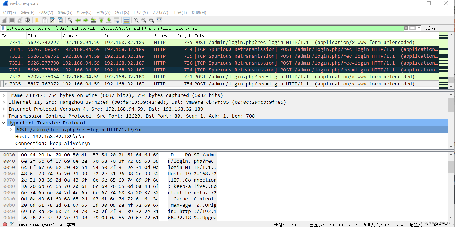 http.request.method=="POST" and ip.addr==192.168.94.59 and http contains "rec=login"