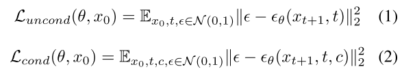 其中x是输入图像,t是相应的时间步长,c是条件输入(例如,文本或图像),ϵ∼N(0,1)是噪声项。