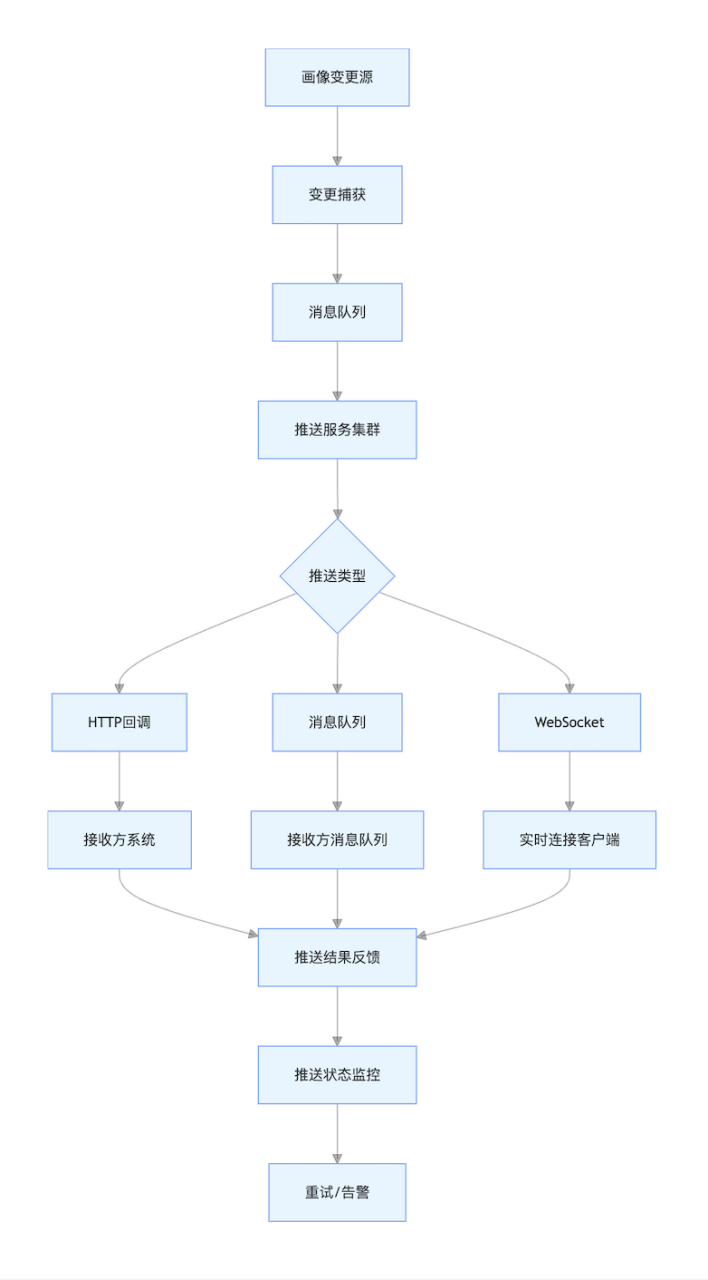 - 形式:实时画像推送服务通过标准化 API 提供用户画像变更的实时通知能力,核心接口包括订阅管理、推送配置与状态查询: