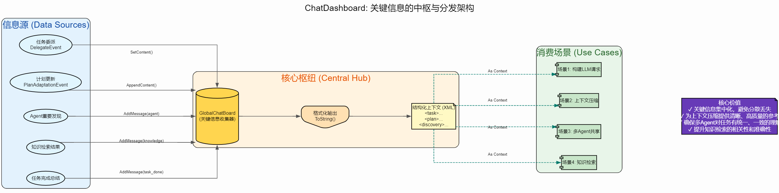 任务目标一致性:通过上下文锚定(ChatDashDoard),即使经过多次压缩和多个Agent协作,仍能保持对用户原始需求的准确理解