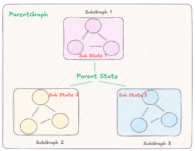 核心:Subgraph是可复用的“图块”,父图里塞进去,就能共享状态。简单比喻: