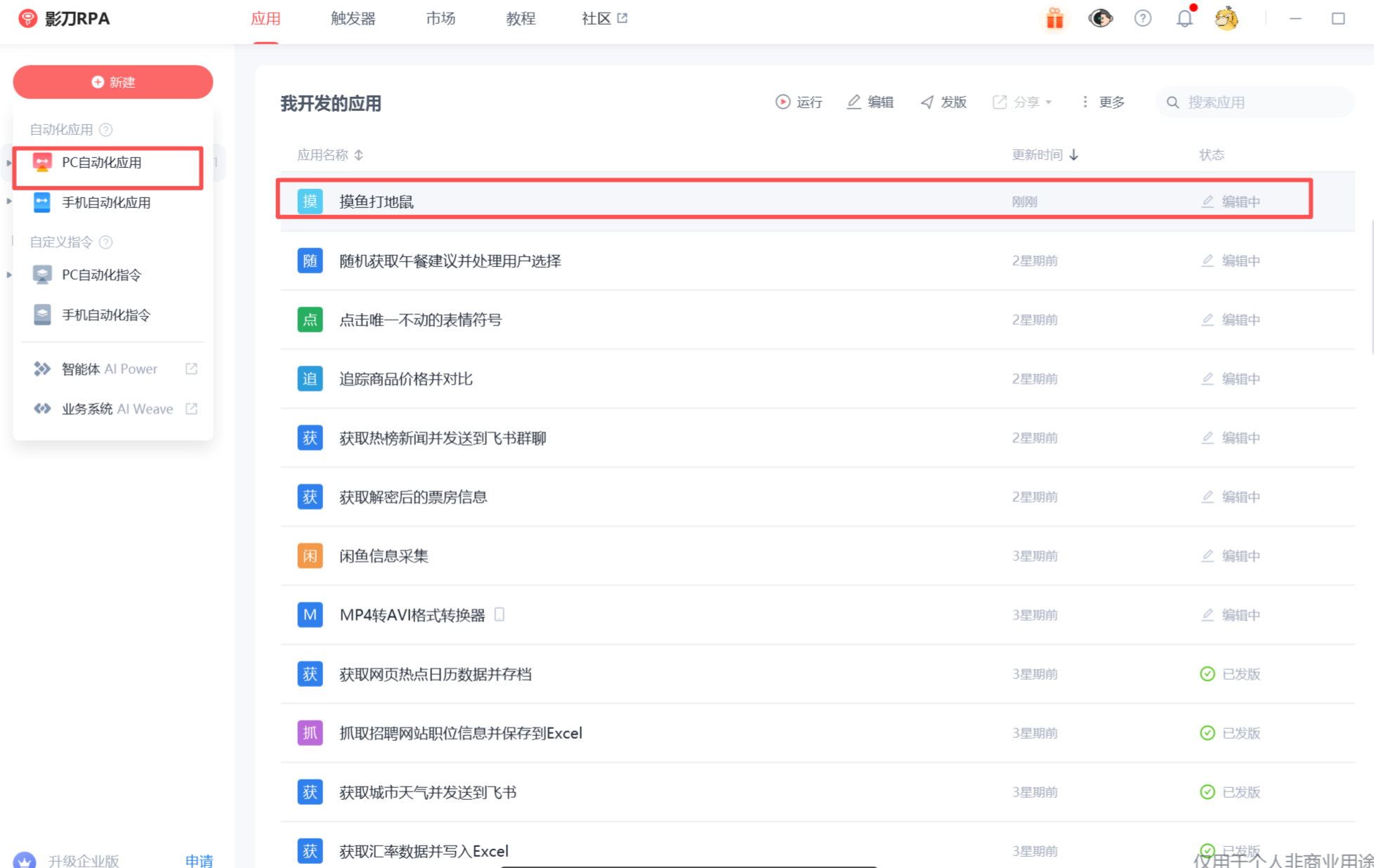 (一)、新建PC自动化应用