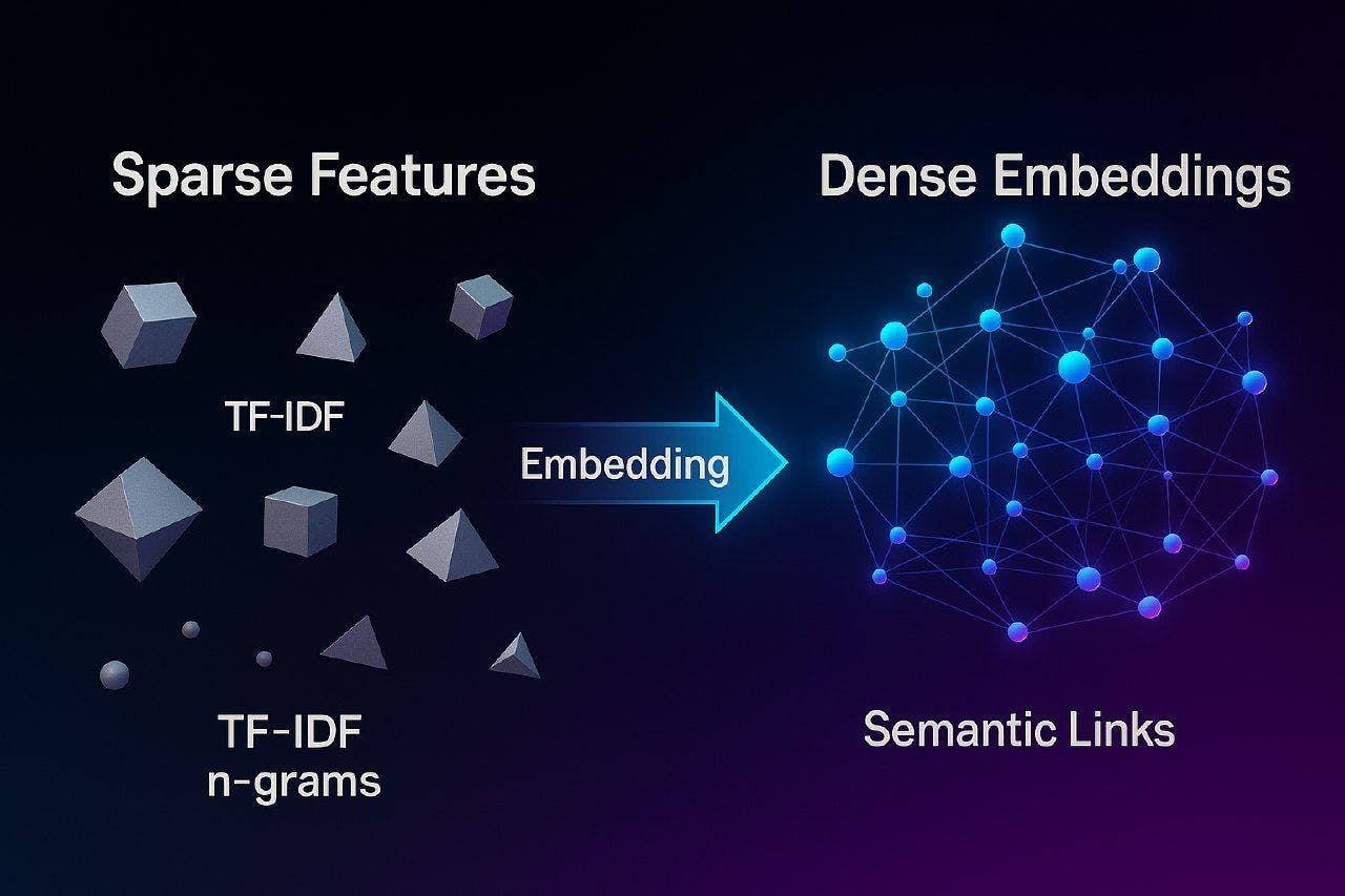嵌入(Embeddings),是从标准的机器学习到智能体内存系统转变的第一步。现代化嵌入模型如同智能特征提取器,可以将普通语言转换为丰富且有意义的表示形式。