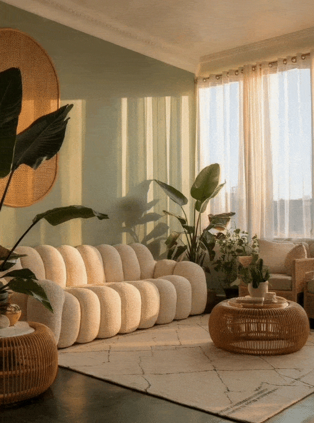 注意:目前暂不支持带有人脸的图片生成,但可以在关键词中加入人物及动作描述生成。例如给沙发场景增加模特试坐效果。