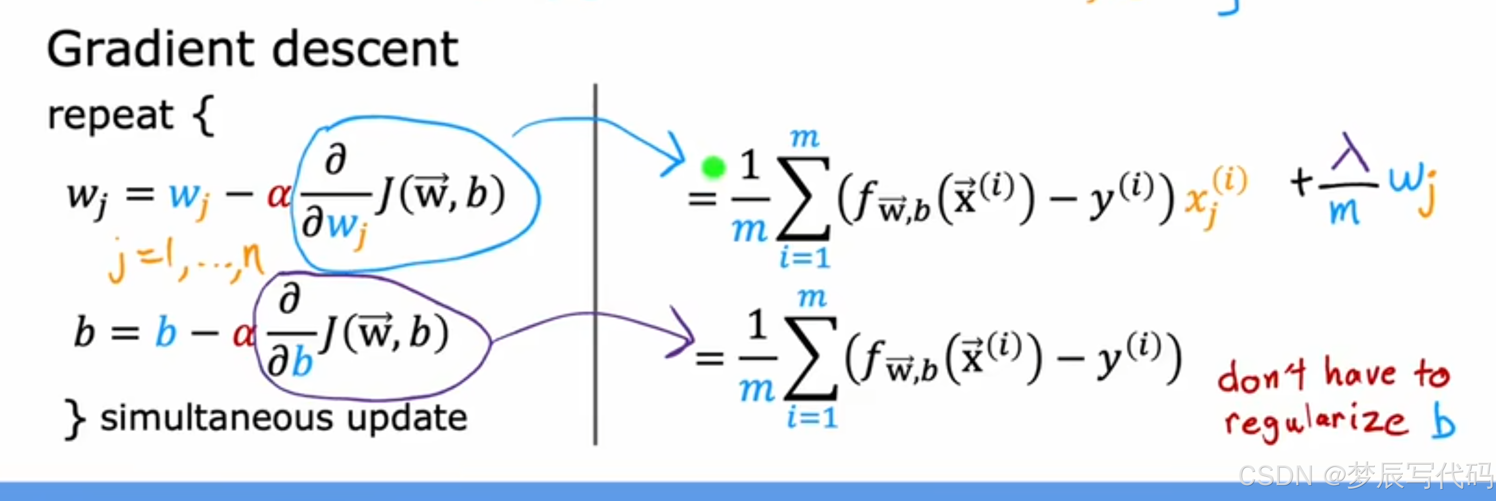 正则化之后的参数梯度下降表示:
