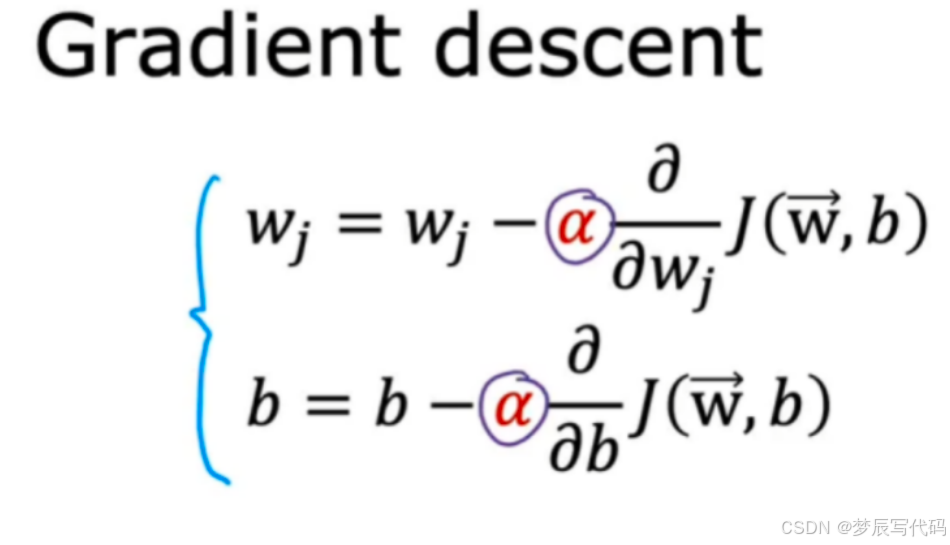 我们无需手动找出最优解找出等高线,那样并不精准,我们可以让机器通过算法帮我们找出最合适的w,b,这种算法称之为梯度下降,梯度下降不仅适用于下线性模型中的找值,也适用于ai训练中更大更复杂的模型,它适用于多个参数的成本函数,阶梯下降是一种可用于尝试最小化任何函数的算法,而不仅仅是线性回归的成本函数