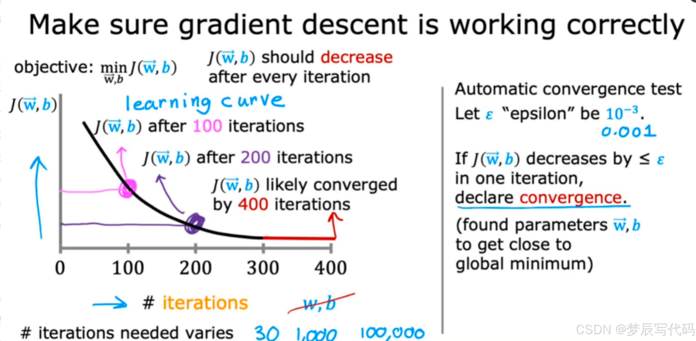 导入语:我们前面学习了很多关于梯度下降的公式以及提高梯度下降效率的方法(特征缩放),一切都做好了之后,我们就要去检验我们的梯度下降是否有效,是否真正收敛。