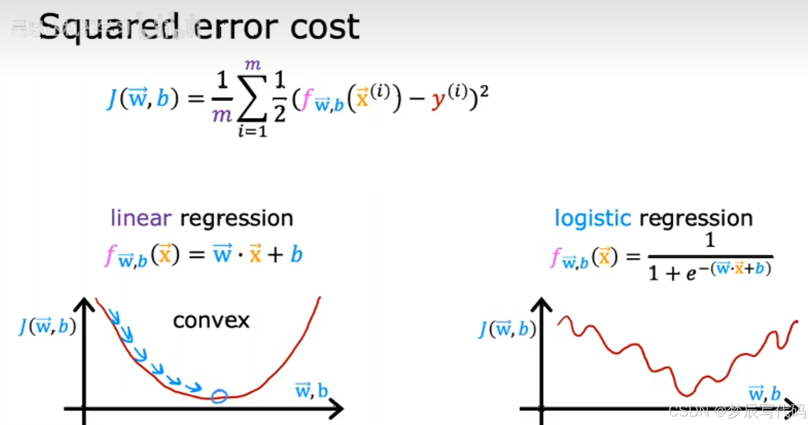 j使成本函数,w和b是参数,不管b咋变,w最小值永远不变