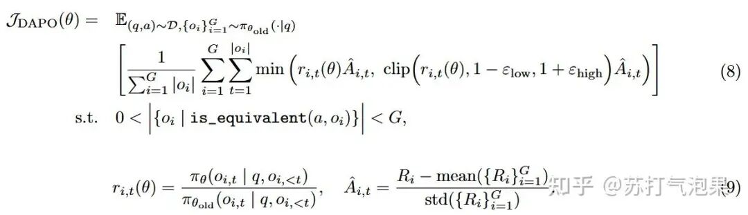 - 用动态采样/超长惩罚增强梯度信号质量,训练效率/稳定性高;