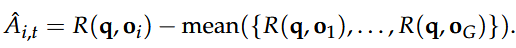 advantage:无需价值网络,做组内相对奖励归一化(z-score),用相对排名代替绝对价值,reward 都相同时,优势值为 0,无法更新模型。