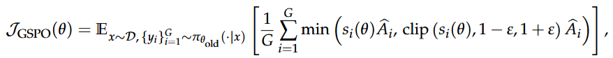 loss:将策略优化的粒度从 token 级别提升至 sequence 级别,把整条回答当成一个整体做重要性采样,在 sequence 维度 clip,非对称 clip 处理。