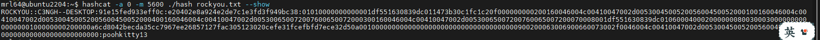 然后根据username::domain:ntlmv2_response.chall:ntproofstr:不包含ntproofstr的ntlmv2_response值的格式构造hash: