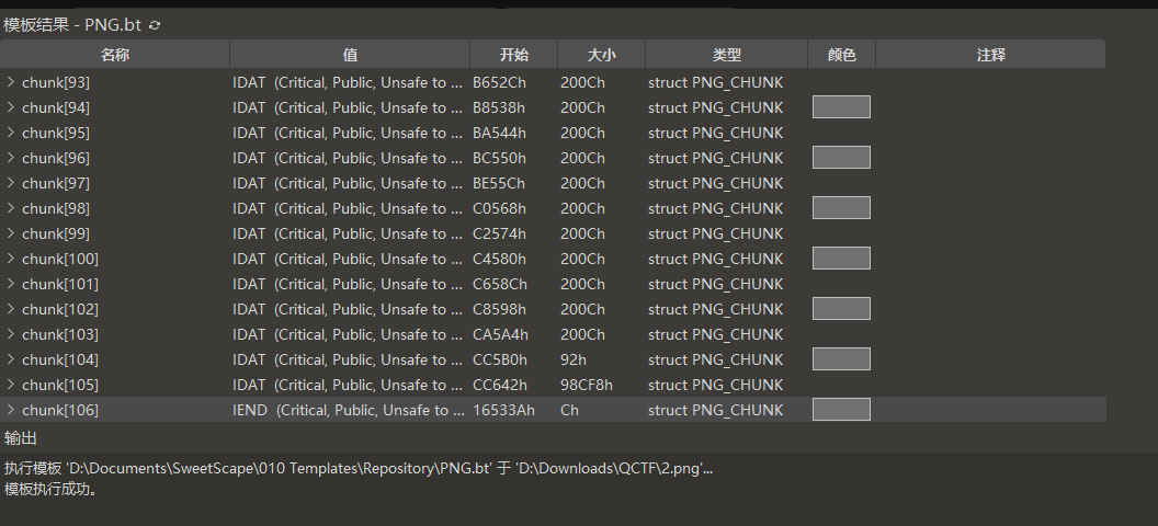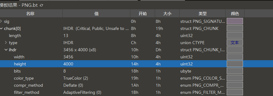 解压得到一张PNG图片,010识别发现CRC错误,说明这个文件的宽高被修改了,我们把图片的高更改下让其更大: