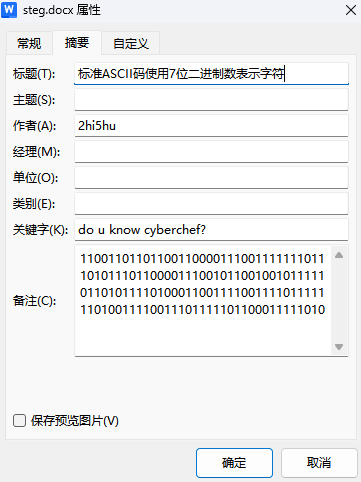 解压出一个docx,发现页眉有一行字,给他粘贴出来,内容是重要的内容就应该存在备注中。那么我们查看该文档的属性: