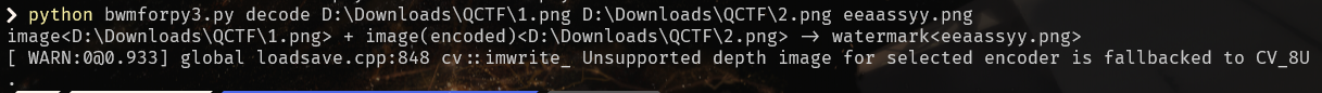 最后一个chunk明显大小不对,单独提取出来构成一个png,把剩下的内容作为一个png,进行盲水印提取: