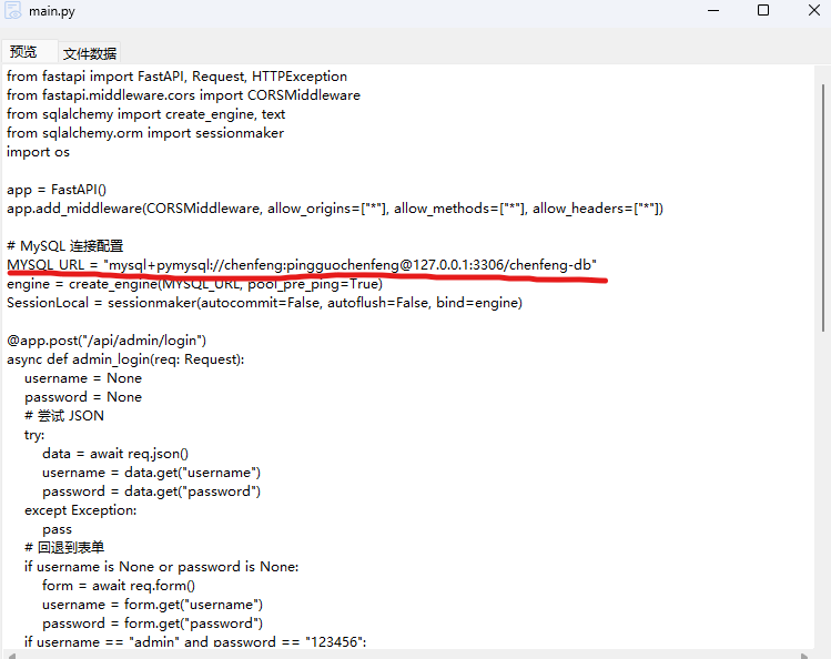 网页源码处于桌面上,数据库信息在python-server的main.py中: