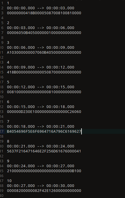 从最后往前,每一帧的持续时间转ascii就是flag了。