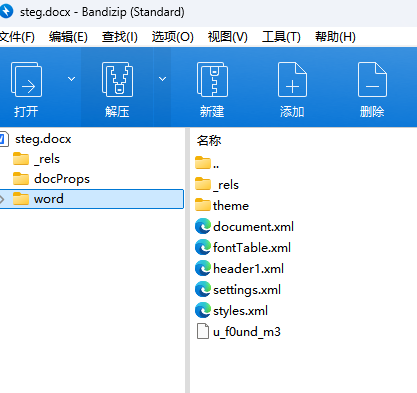 docx的本质是一个zip,我们将其解压,发现在word目录下存在一个奇怪的文件: