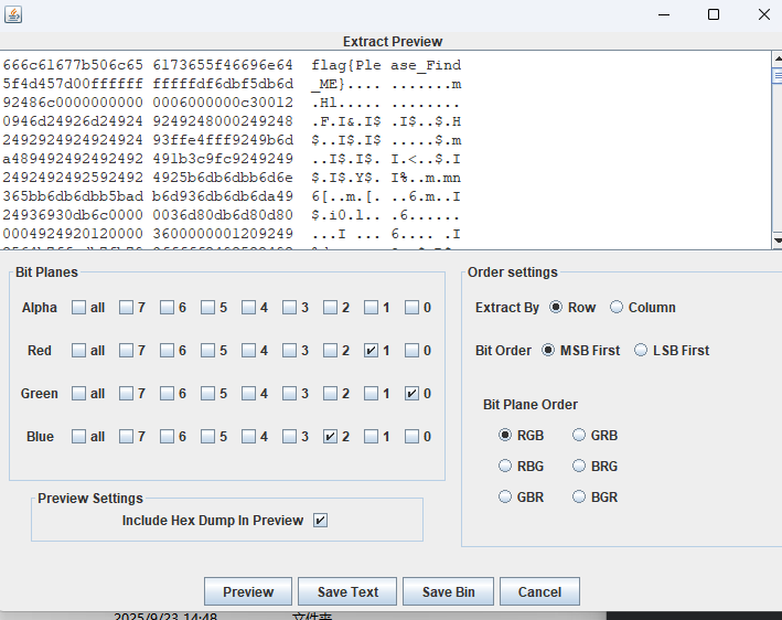 使用stegsolve提取这三个通道的RGB信息,找到flag: