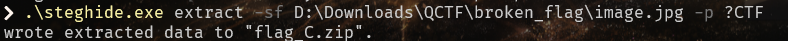 根据hint.txt,使用steghide,密码?CTF读取出最后一个分卷: