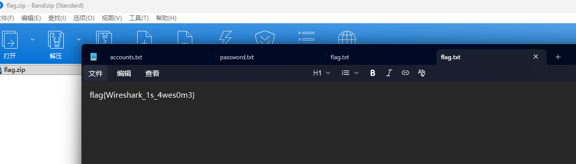 以这个hash作为密码解开zip中的另一个txt文件,拿到flag。